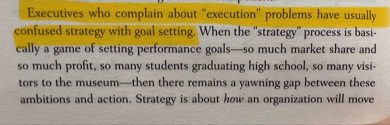 I won’t go through all of them - you should read the book! - but as an example; confusing strategy with goal setting.