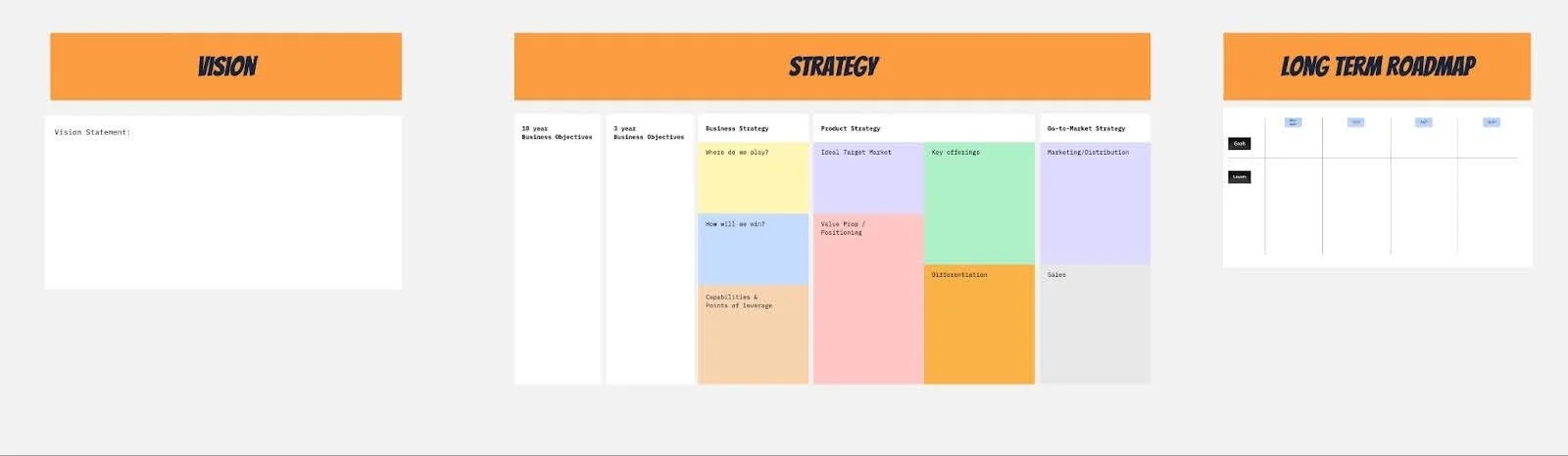 The next 3 sections in the board are all focused on reviewing your long-term vision, product strategy and roadmap.