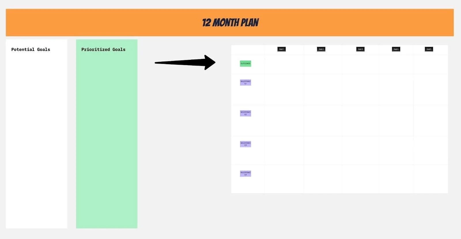 To do this, the template will get you to break each goal down into quarterly milestones - if you're using this template for quarterly planning, I'd recommend making them monthly milestones.
